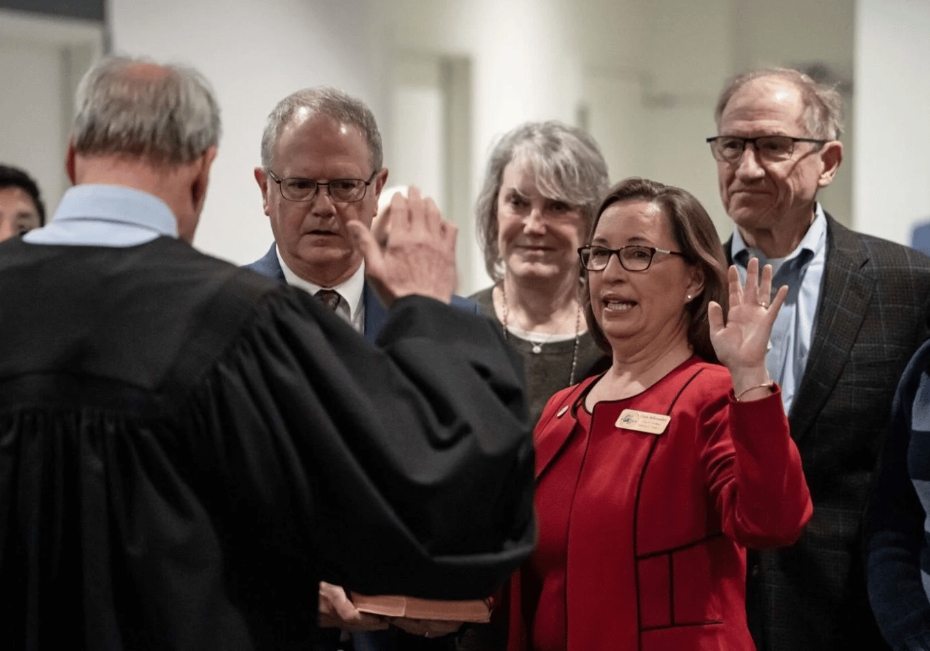 Council woman Cara Schroeder being sworn in for another term | Photo Credit: Dean Hesse, Decaturish
